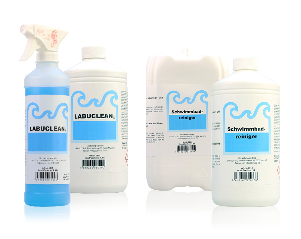 Durch die Entleerung des Bassins unmittelbar vor der Reinigung, kann vermieden werden, dass Algen und andere Verschmutzungen an Wänden und Boden anhaften und antrocknen können. Ist das Bassin geleert, sofort mit dem LABULIT Schwimmbadreiniger die Grundreinigung beginnen. Je nach Verschmutzungsrad resp. Verkalkung den Reiniger 1 : 5 verdünnt bis konzentriert anwenden. Mit Wasser gut nachspülen.