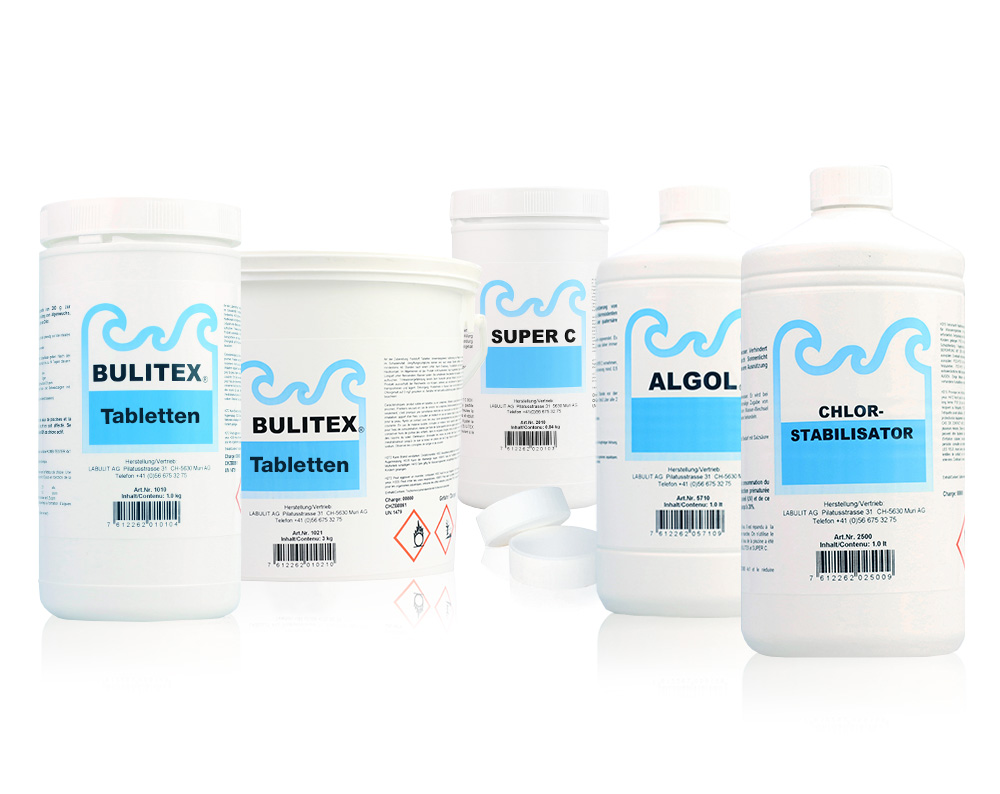 Das bewährte BULITEX-Programm ist in seiner Wirksamkeit kaum zu übertreffen und muss trotzdem nur alle 14 Tage dosiert werden. Das BULITEX-Programm garantiert für kristallklares Wasser, welches höchsten Qualitätsansprüchen genügt.