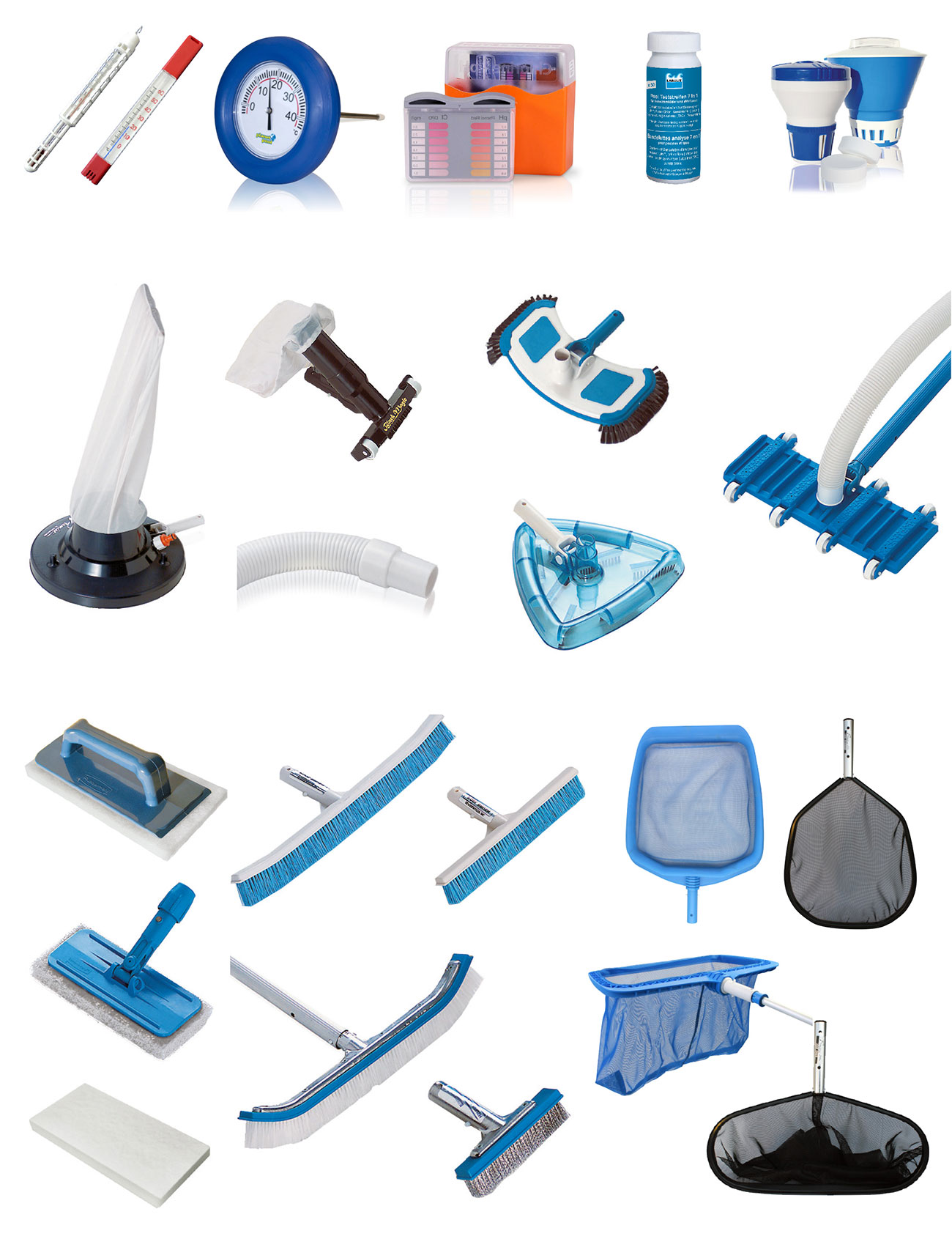 Bei uns finden Sie eine grosse Auswahl an Schwimmbadzubehör; wie Schwimmbad-Thermometer, Tablettenbojen, Reinigungsnetze, Führungsstangen, Reparaturfolien, Bodensauger, Reinigungsbürsten und vieles mehr.